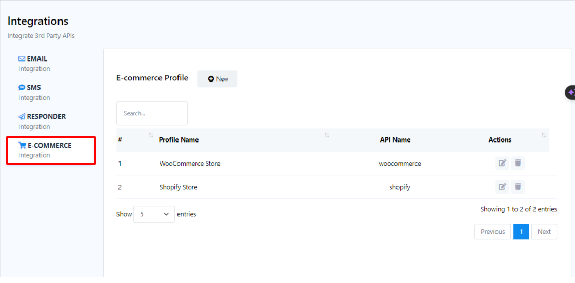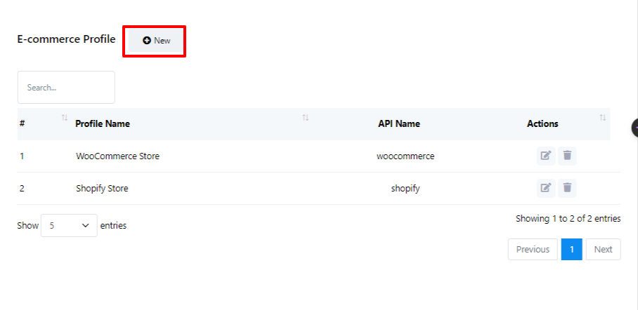 - لإعداد ملف تعريف جديد لمزود خدمة الاستجابة، انقر فوق الزر "جديد" بجوار ملف تعريف التجارة الإلكترونية.