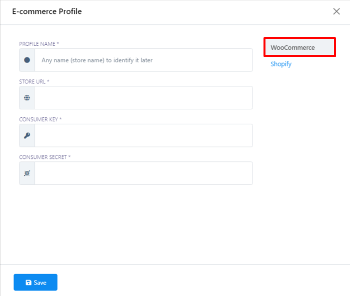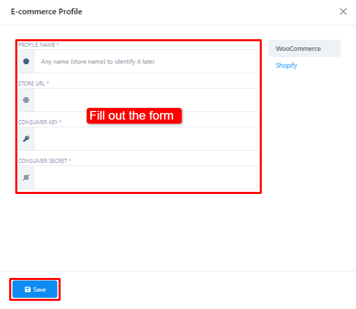 - بعد أن تقوم بملء المعلومات المطلوبة، انقر فوق الزر "حفظ" لإكمال إعداد ملف تعريف WooCommerce الخاص بك.