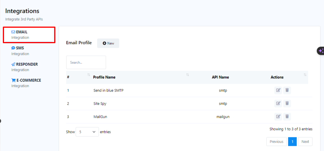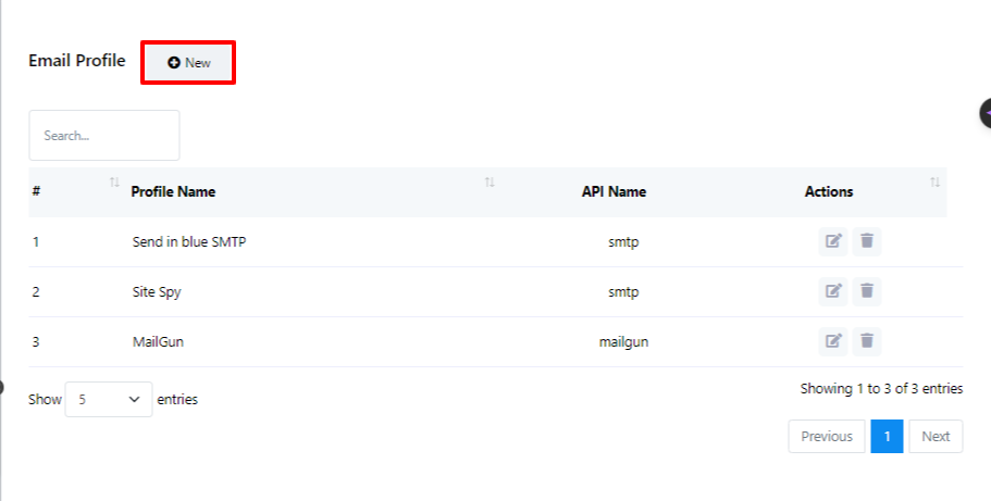 - لإعداد ملف تعريف جديد لمزود خدمة البريد الإلكتروني، انقر فوق الزر "جديد" بجوار ملف تعريف البريد الإلكتروني.