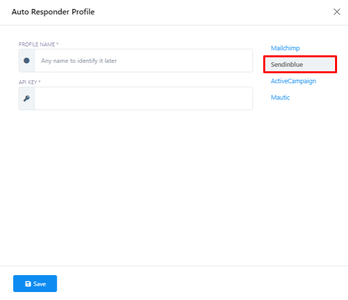 - في هذا الدليل، سنشرح العملية باستخدام Sendinblue كمزود خدمة الاستجابة المختار. لذا، انقر على خيار `Sendinblue`.