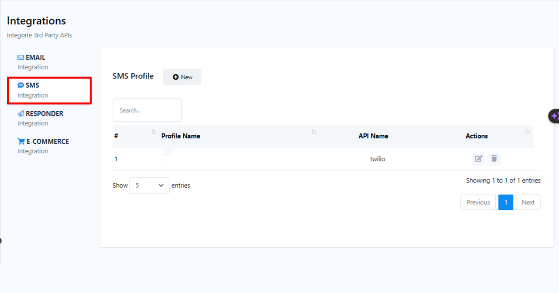 - لإعداد ملف تعريف جديد لمزود خدمة الرسائل القصيرة، انقر فوق الزر "جديد" بجوار ملف تعريف الرسائل القصيرة.