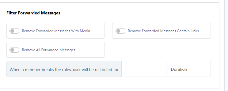 بالإضافة إلى ذلك، يمكنك فرض قيود على الأعضاء الذين يخالفون قواعد المجموعة. عند انتهاك أي عضو للقواعد، يمكنك تقييد وصوله لفترة محددة. سيتولى البوت هذه العملية تلقائيًا، مما يضمن تطبيقًا سلسًا لإرشادات المجموعة.