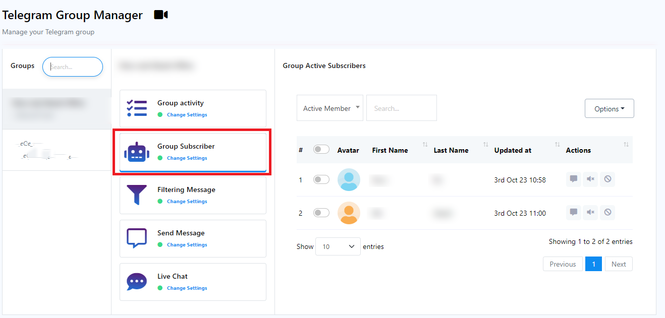 المشتركون النشطون في المجموعة: ستجد في قسم "المشتركون النشطون في المجموعة" قائمة شاملة بتفاصيل جميع الأعضاء النشطين في المجموعة. تُقدم هذه القائمة معلومات قيّمة حول عضوية مجموعتك.