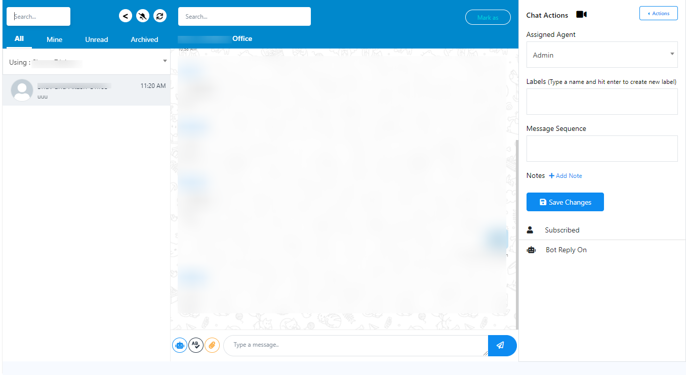 - العلامات: استخدم هذا الحقل لتعيين علامة للمحادثة. يمكنك أيضًا إنشاء علامة جديدة بكتابة اسم ثم الضغط على زر الإدخال في هذا الحقل.