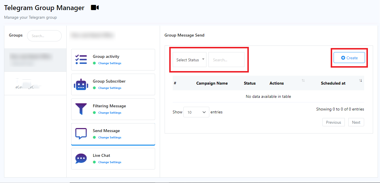 بالإضافة إلى ذلك، ستجد زر "إنشاء"، الذي يسمح لك بإنشاء قالب حملة رسائل جديد.