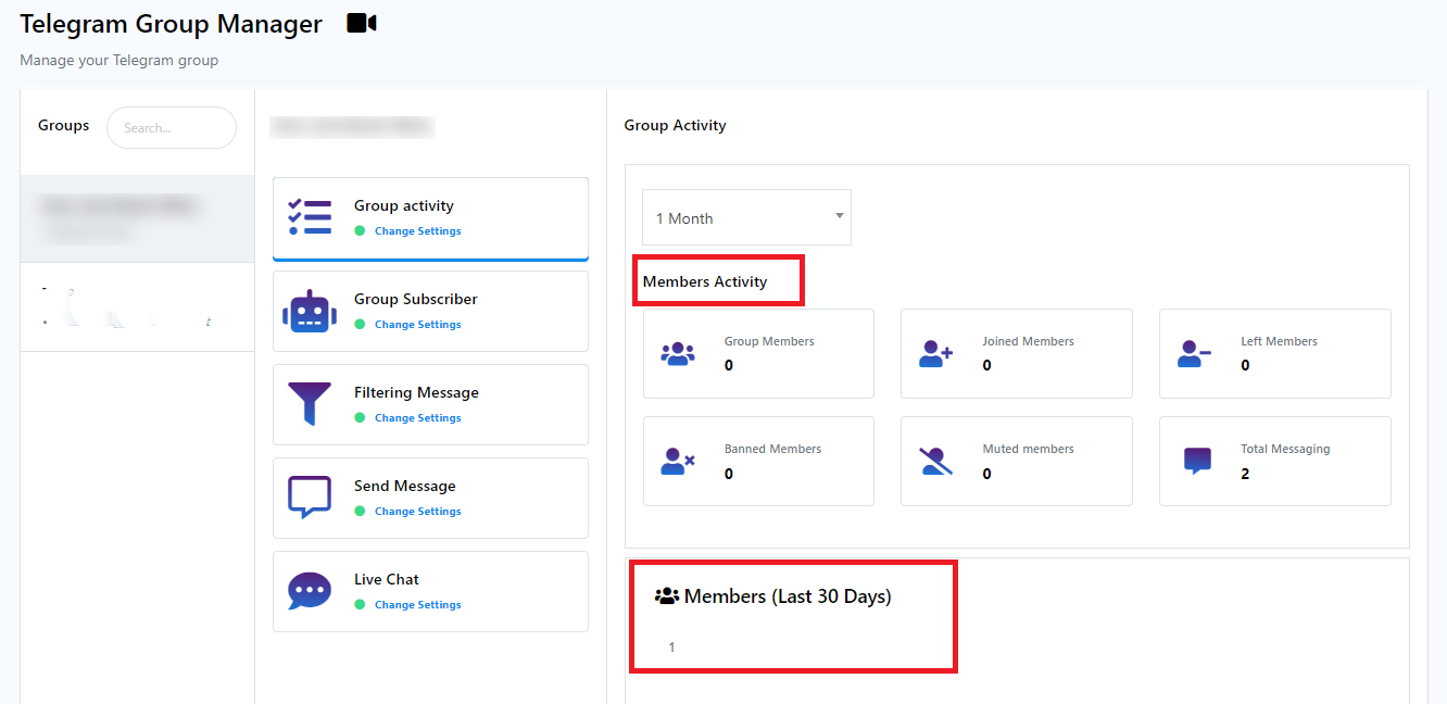 نشاط المجموعة ميزة قيّمة تُمكّنك من مراقبة مستويات تفاعل الأعضاء داخل مجموعتك على تيليجرام. تُقدّم هذه الميزة تحليلات شاملة لمختلف المقاييس، ما يُتيح لك الحصول على نظرة شاملة على ديناميكيات مجموعتك.