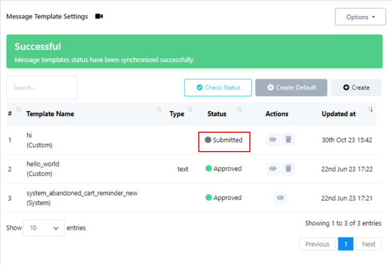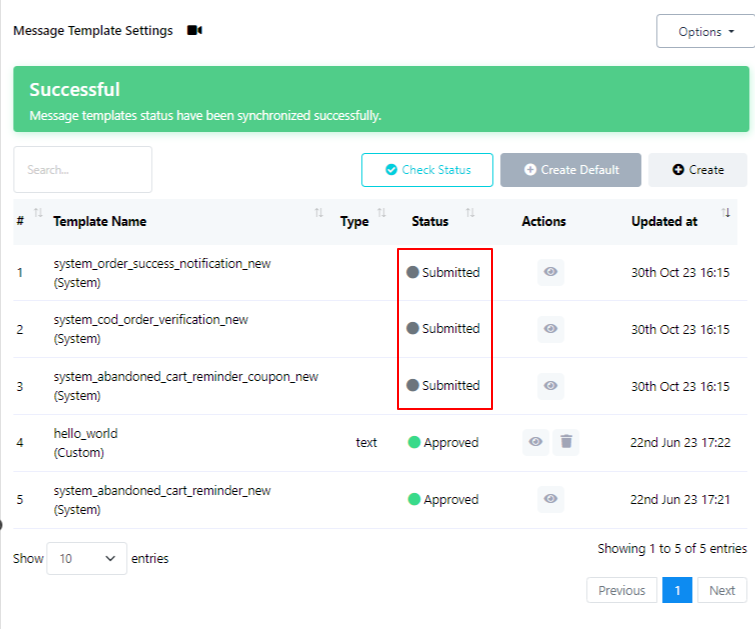 بعد الحفظ، سيظهر قالبك الجديد في قسم القوالب، ولكن حالته ستكون في البداية "مُرسَل". يُرجى العلم أن الموافقة على القالب قد تستغرق بعض الوقت. بعد مراجعة القالب والموافقة عليه، سيتم تحديث حالته إلى "معتمد". ما عليك سوى التحقق من الحالة مرة أخرى للتأكد من الموافقة.