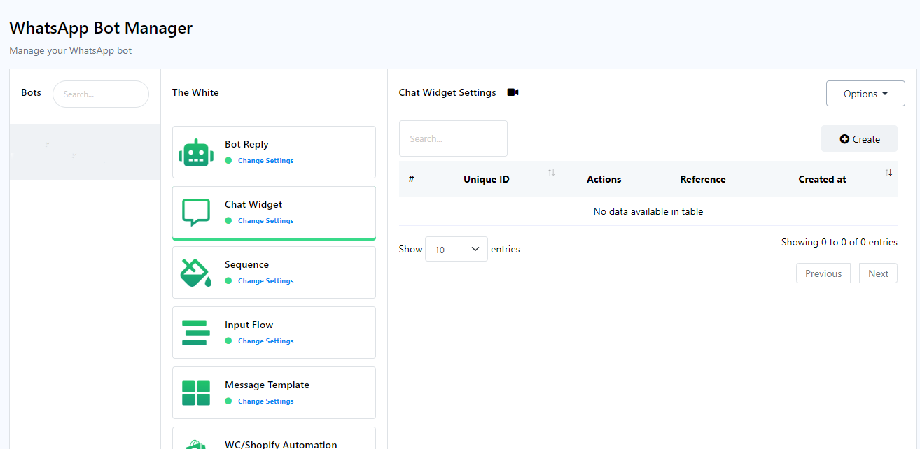 - انتقل إلى صفحة WhatsApp Bot Manager.