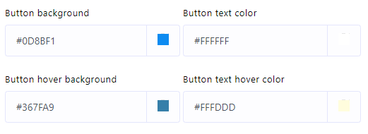 - قم بتحديد الألوان لخلفية زر عنصر واجهة المستخدم للدردشة، ولون نص الزر، وخلفية تحريك الزر، ولون تحريك نص الزر.