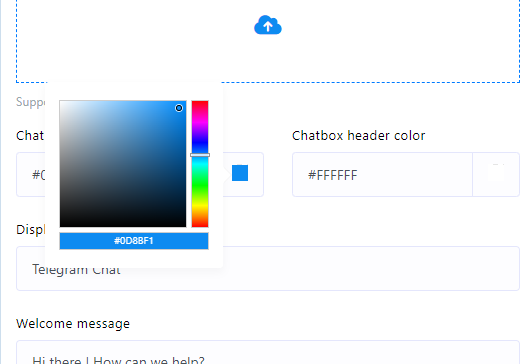 - حدد لونًا من لوحة الألوان أو أدخل رمز اللون السداسي عشري لخلفية رأس عنصر واجهة المستخدم للدردشة.