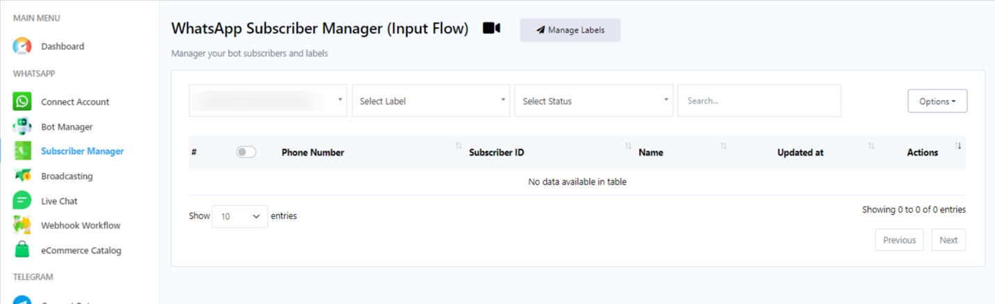 يمكن للمستخدم أيضًا إنشاء تدفق إدخال مستخدم لـ WhatsApp هنا، والذي يمكنه استخدامه لاحقًا على أي روبوت آخر.