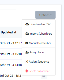 - لاستيراد المشتركين، حدد "استيراد المشتركين" من قائمة الخيارات.