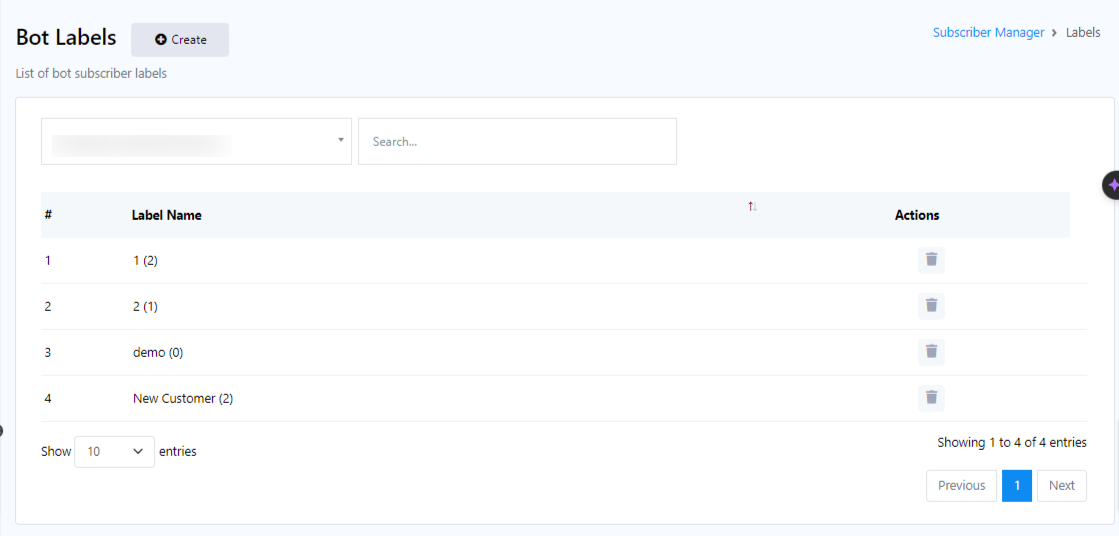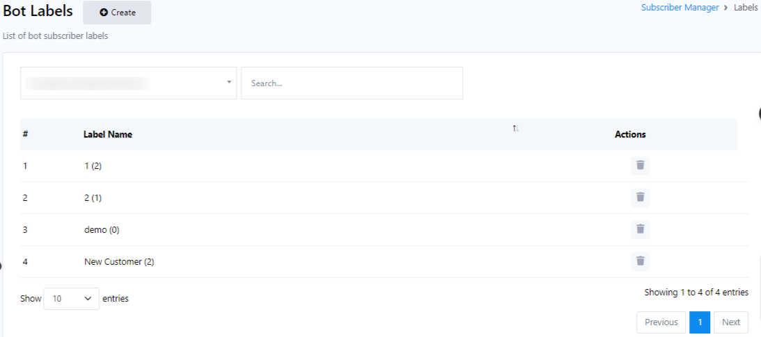 يمكنك أيضًا حذف تسمية عن طريق النقر فوق زر الإجراء (أيقونة الحذف) المرتبط باسم التسمية.