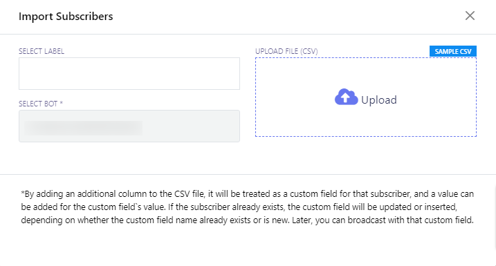 - سيظهر نموذج نموذجي يسمى "استيراد المشتركين" مع حقلين: "تحديد التسمية" و"تحديد الروبوت".